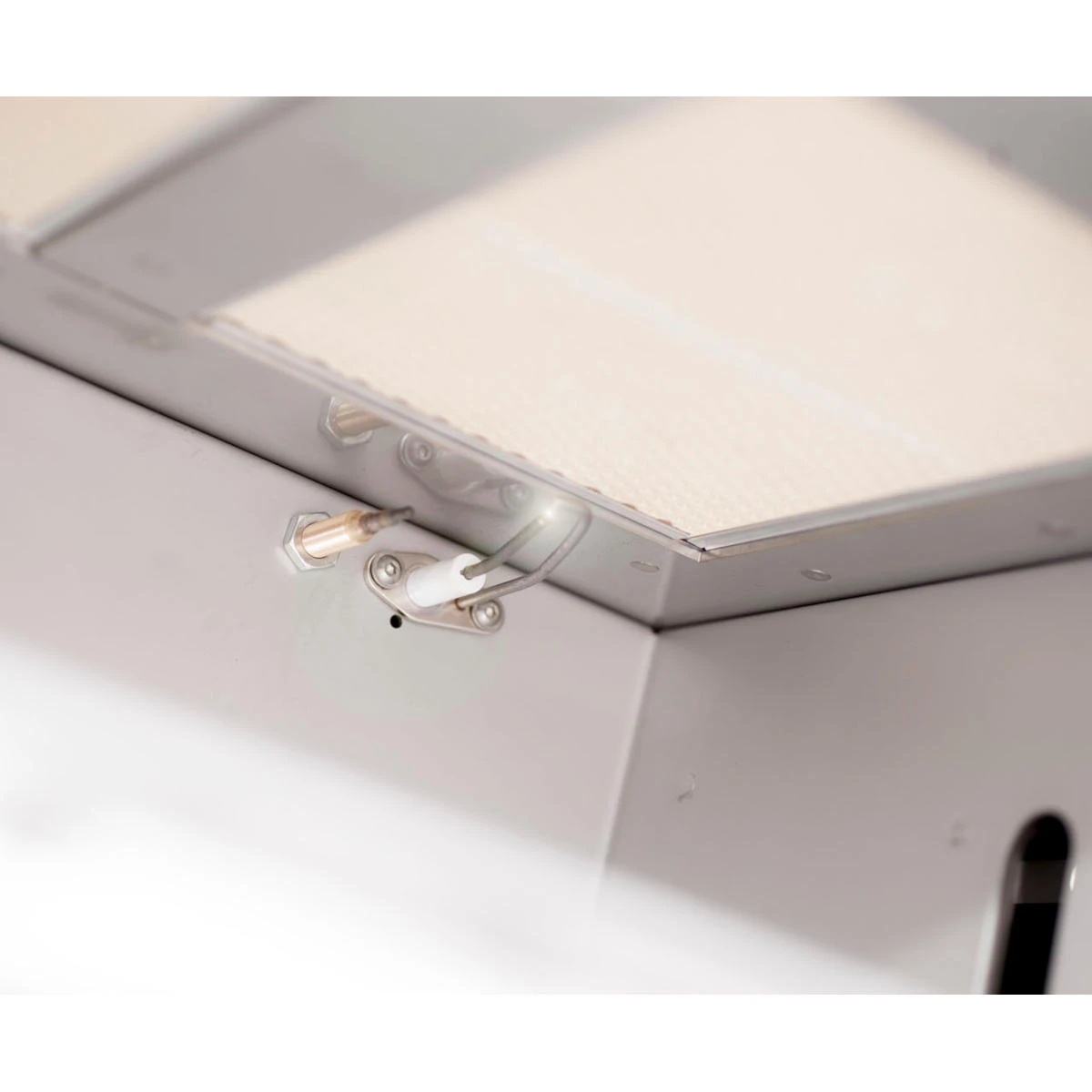 Dank der praktischen Einhandhöhenverstellung auf der Vorderseite können Sie die Rosthöhe jederzeit einfach und