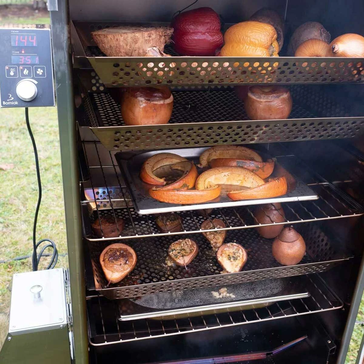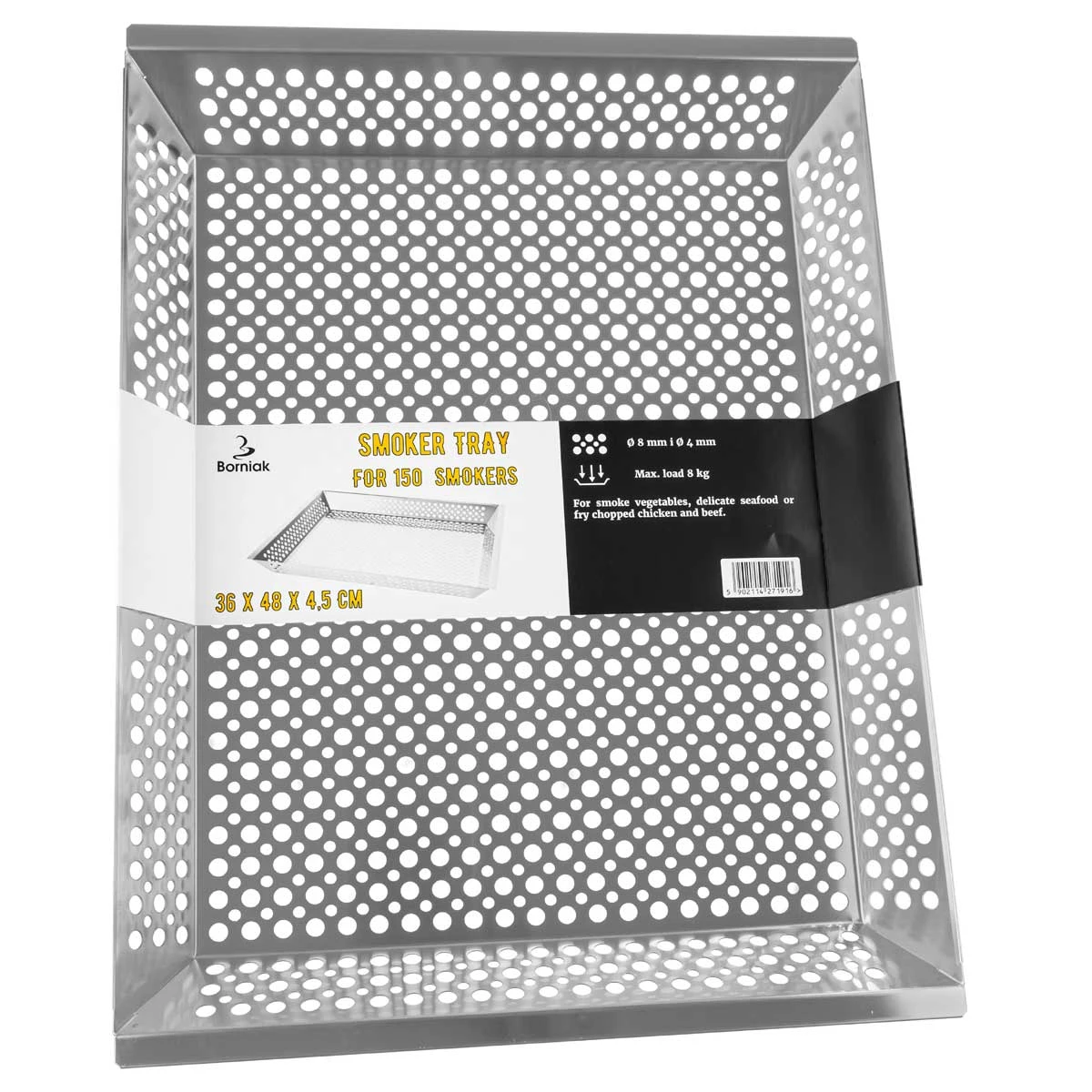 Der gelochte Korb aus ist das perfekte Zubehör für jeden, der gerne Gemüse, Meeresfrüchte, kleingeschnittenes Fleisch oder Obst räuchert.