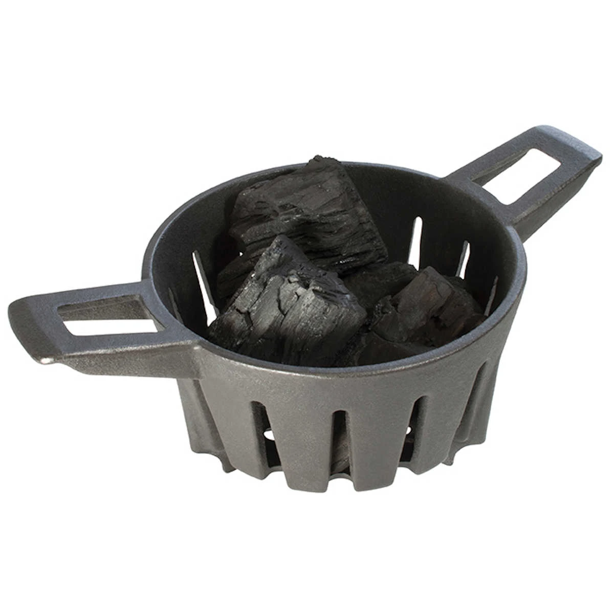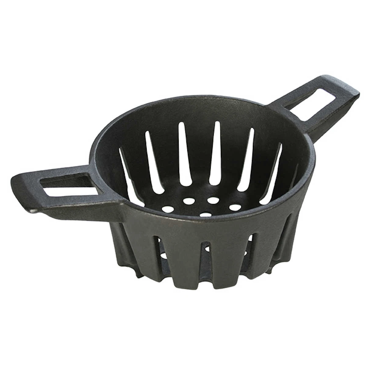 Der gusseiserne Holzkohlekorb ist ideal für ein leichteres Anzünden der Holzkohle und wenn nötig auch für ein einfacheres Entnehmen.