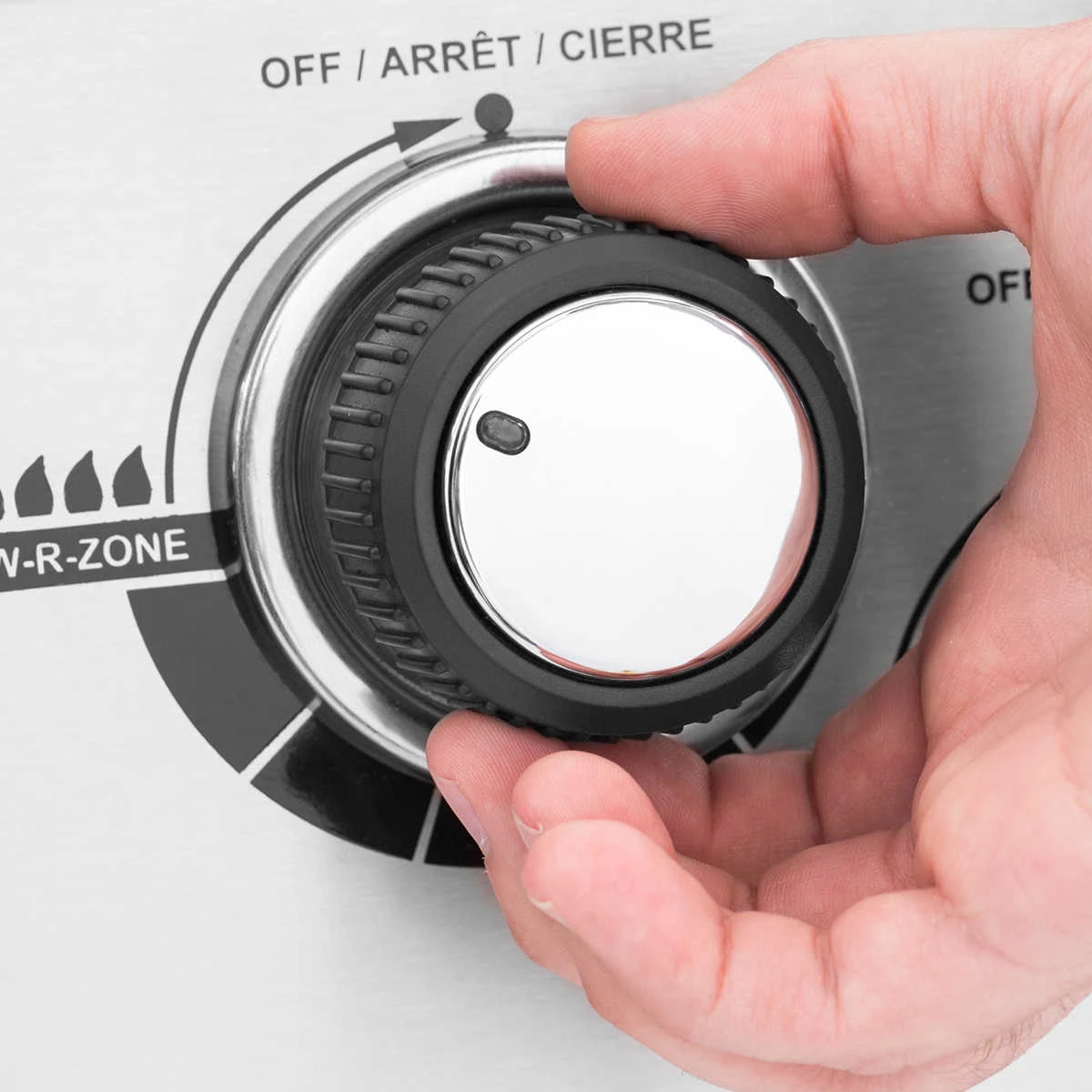Auf Knopfdruck lässt sich die Beleuchtung der Kontrollknöpfe aktivieren. Die Knopfbeleuchtung sorgt für mehr Sicherheit in der Dunkelheit und macht den Grill in der Dunkelheit zum absoluten Hingucker.