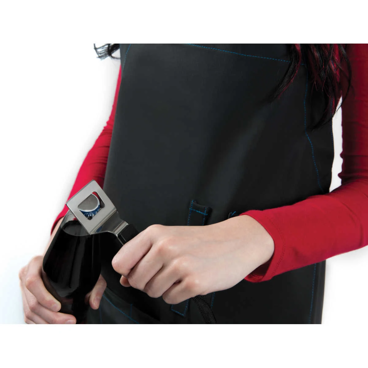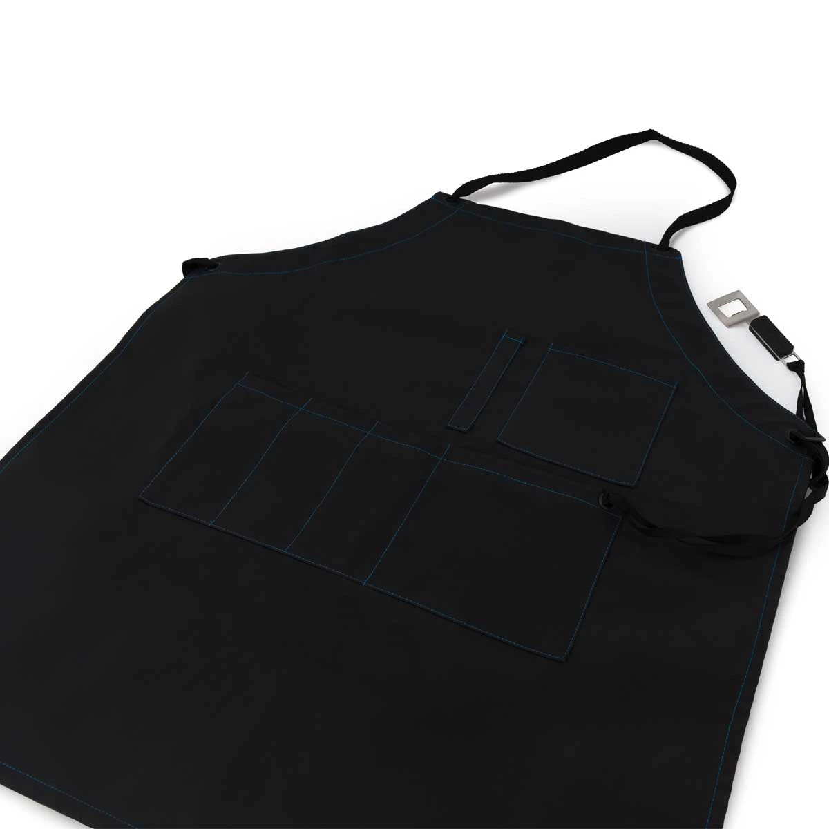 Gefertigt aus massivem und wasserabweisendem Material punktet die Grillschürze mit einem , Taschen für Grillutensilien und Getränken sowie einer verstellbaren Halsschlaufe.