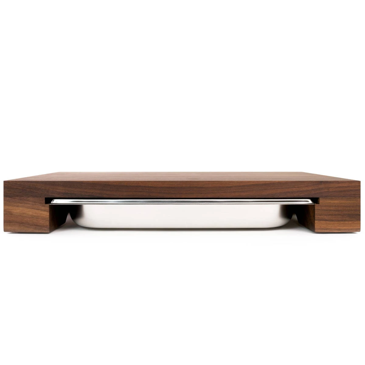Das Schneidebrett besteht aus , was für eine warme Optik sorgt und gleichzeitig Stabilität und Belastbarkeit garantiert. Die wird leichtgängig wie eine Schublade nach hinten und vorne herausgeschoben. Schält Obst und Gemüse, schneidet Euer Brot oder zerlegt Geflügel auf dem massiven Walnuss-Holzbrett, das Euch eine mit einer Größe von bietet. Alle Abfälle und Brotkrümel schiebt Ihr einfach in die Auffangwanne und schon sind sie aus dem Weg. Die Auffangwanne aus Edelstahl ist für die Spülmaschine geeignet.