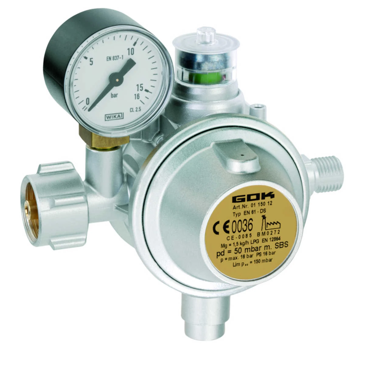 - Sichtanzeige (grün/rot) mit optischem Signal (rot) bei Ausgangsdrücken über 80 mbar