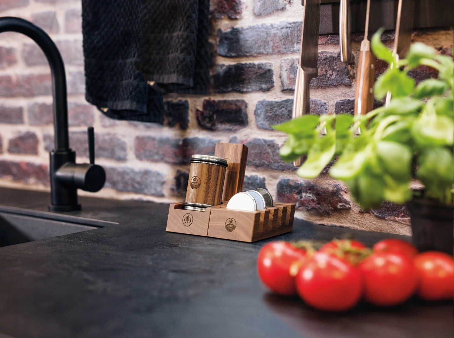 Mit der HORL Aufbewahrungsstation für den HORL Rollschleifer und die HORL Magnetschleiflehre herrscht Ordnung in Eurer Küche. Immer griffbereit ist die Station nicht nur super praktisch, sondern auch ein echter Blickfang. Hergestellt im Schwarzwald aus hochwertigem Nussbaum-Massivholz.