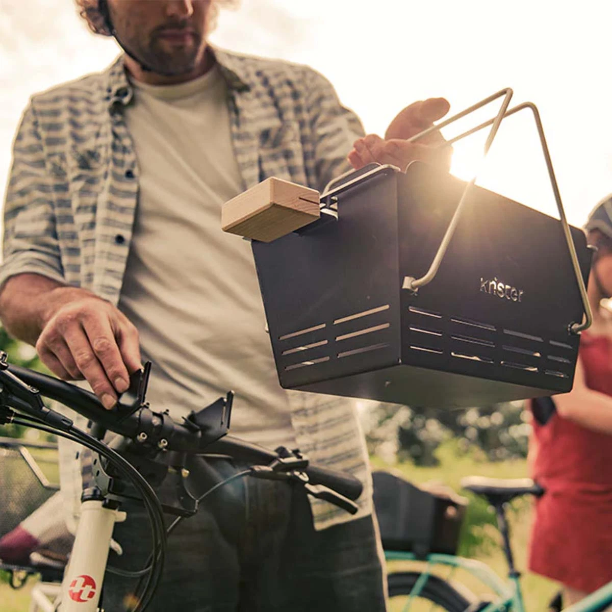 Das Highlight auf jeder Fahrradtour: die gemütliche Grillrunde am Ende des Tages oder in der Pause am Mittag. Die Knister Grill Fahrradhalterung lässt sich einfach und sicher an jedem Fahrradlenker befestigen, sodass du deinen Knister Grill immer dabei hast.