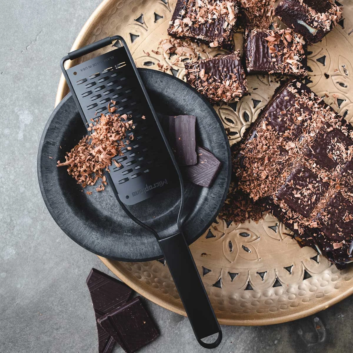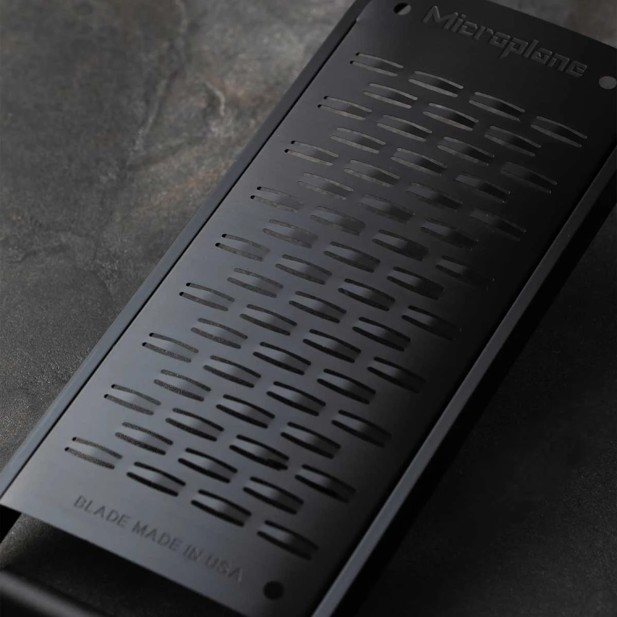 Wer neben höchster Funktionalität auch Wert auf legt, wird an der Microplane Black Sheep Serie seine wahre Freude haben. Vom Griff über den Rahmen bis zur Klinge in schwarze Optik gehüllt, bestechen die Black Sheep Reiben mit ihrem Aussehen. Eine funktionelle sorgt für zusätzliche Kratzfestigkeit.