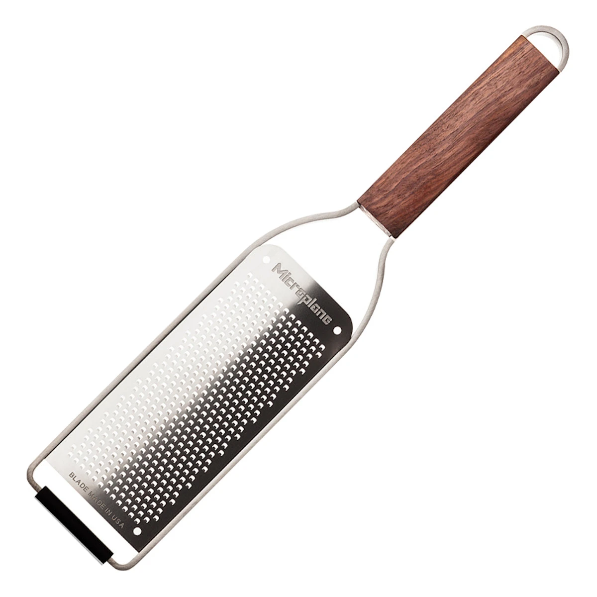 Die feine Reibe von Microplane ist für verschiedene Lebensmittel geeignet, darunter: Hartkäse, Zitrusfrüchte, Knoblauch, Chili, Zimt, Muskatnuss und viele weitere.