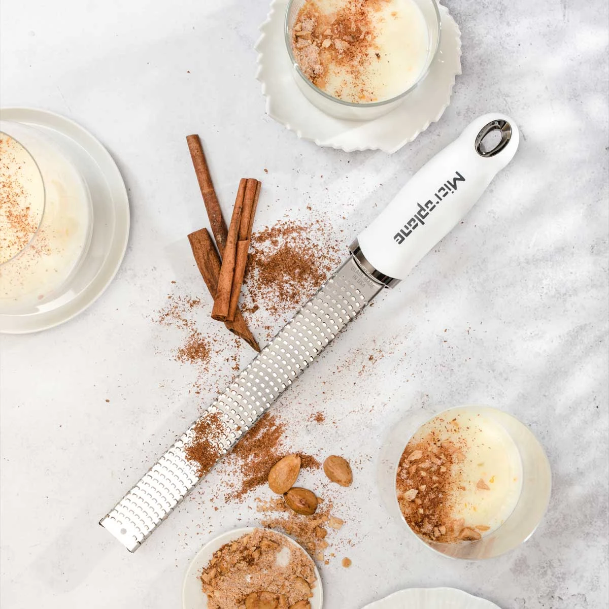 Die Reiben von Microplane sind für verschiedene Lebensmittel geeignet, darunter: Zitrusfrüchte, Hartkäse, Ingwer, Schokolade, Muskatnuss, Trüffel und viele weitere.