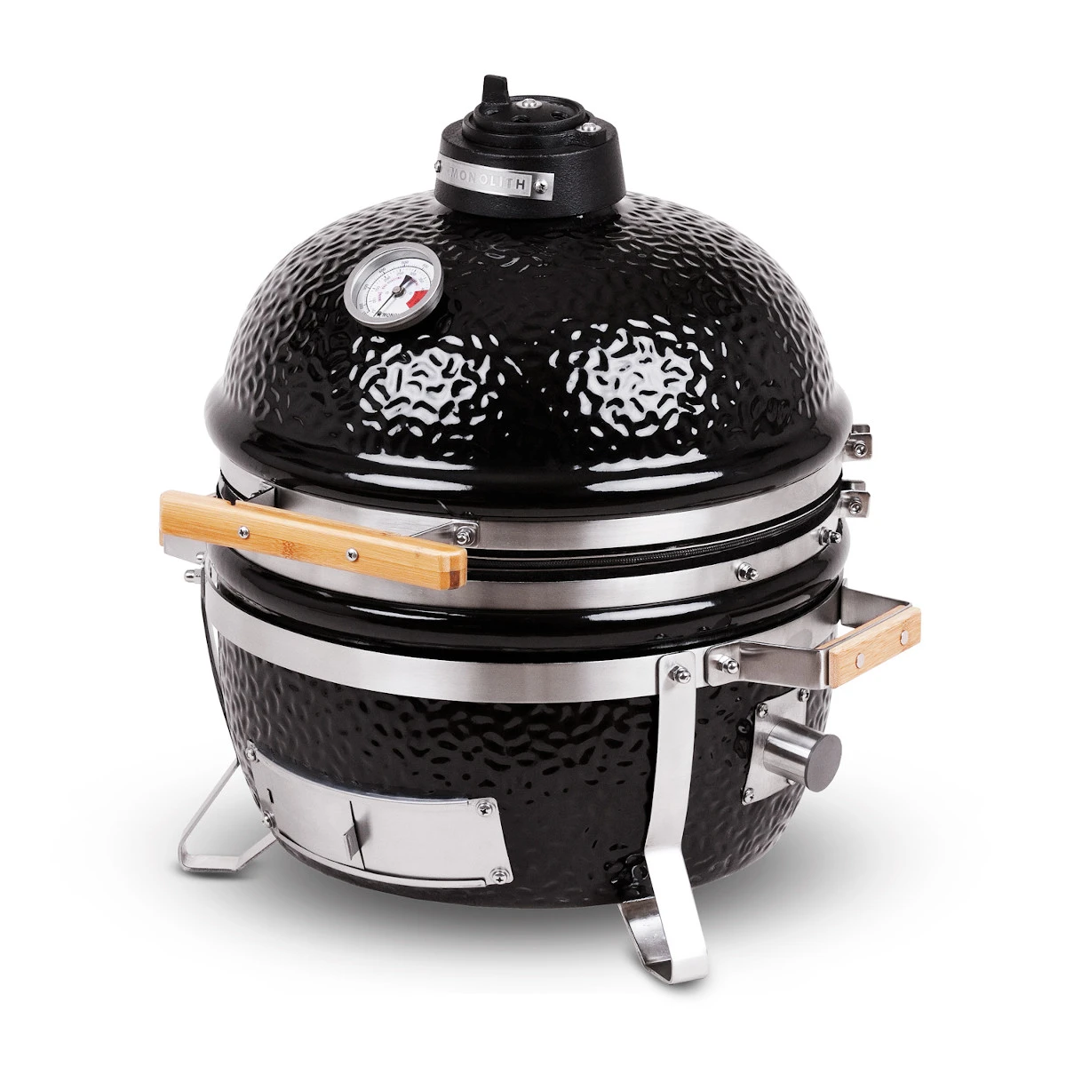 Der Icon von Monolith ist ein wahrer Alleskönner – Grillen, Smoken, Backen, Garen und Räuchern in einem Grill. Das Beste daran ist, dass alles in einem kleinen Grill vereint ist. Ob Ihr den Icon auf dem Balkon, dem Gartentisch oder spontan unterwegs verwendet – dank der kleinen Größe und dem vergleichsweise geringem Gewicht ist der Monolith Icon ideal als Tischgrill oder zum Mitnehmen geeignet. Mit dem abnehmbaren Deckel erweitern sich die Möglichkeiten mit dem Monolith Keramikgrill to go: Mit Hilfe einer Feuerplatte lassen sich Gerichte wie Ratatouille zubereiten oder Ihr grillt in großer Runde wie auf einem heißen Stein. In der Mitte der Platte habt Ihr die Möglichkeit, das Grillgut scharf anzubraten und am äußeren Rand der Feuerplatte wird das Essen über einen längeren Zeitraum warmgehalten. Der Monolith Icon heizt schnell auf und kann bei niedrigen Temperaturen um die 100 °C, bis zu 20 Stunden die Temperatur halten.