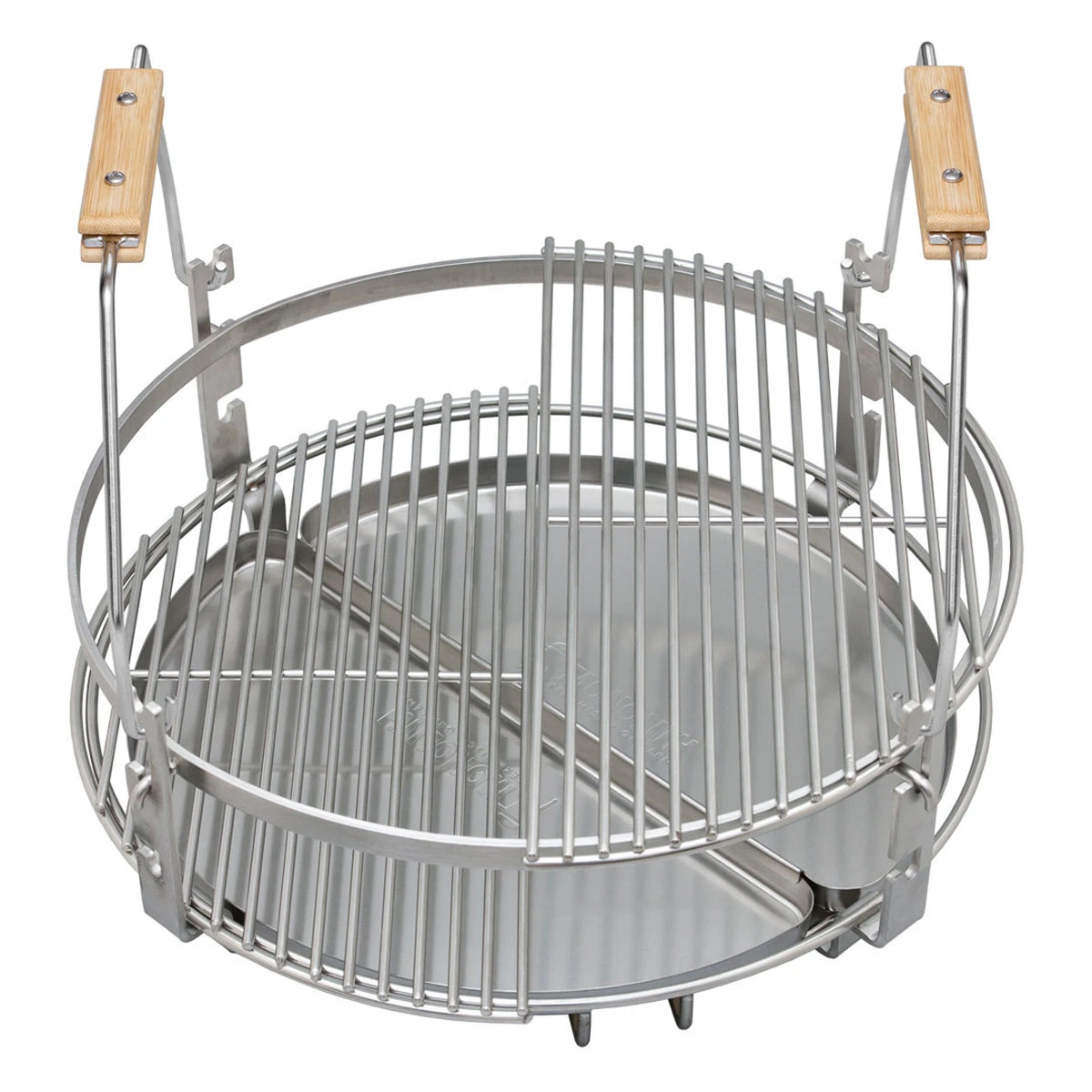 - : Mit geteilten Grillflächen auf bis zu vier Ebenen grillen. Mit Einsatz des geteilten Deflektorsteins ist gleichzeitig direktes und indirektes Grillen möglich.