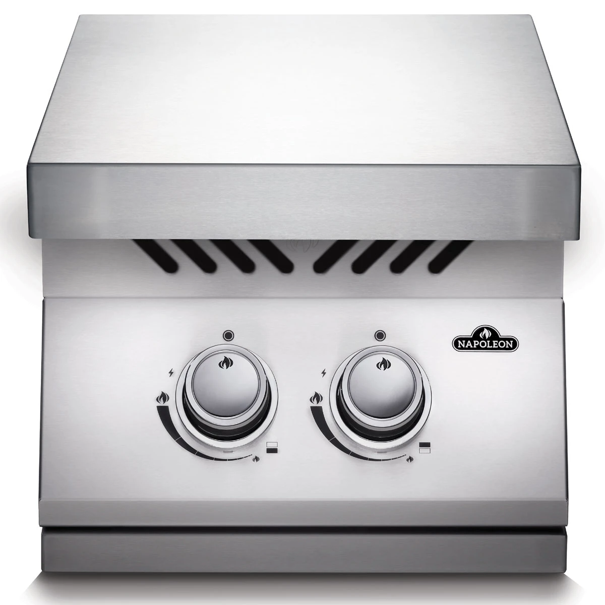 - Wird der Einbau-Seitenbrenner nicht in der Nähe des Napoleon 500er Einbaugrills verbaut, ist für die Drehregler-Stromversorgung zusätzlich ein Netzteil-Kit erforderlich