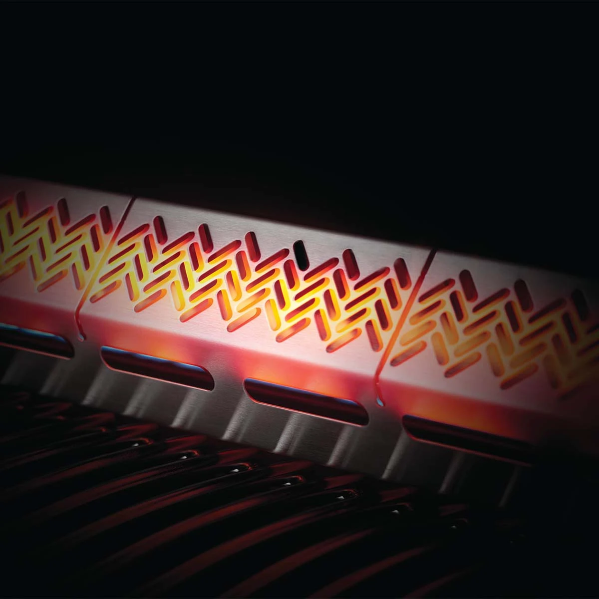 - Großer Infrarot SIZZLE ZONE Seitenbrenner mit höhenverstellbarem Edelstahl-Grillrost