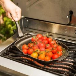 Knackiges Grillgemüse, Zwiebelringe, Garnelen oder marinierter Thunfisch – in der Grillpfanne aus Gusseisen kreieren Sie einen herrlichen Geschmack für den Gaumen Ihrer Gäste. Fertig gegart, kann das Ganze mit dem praktischen Holz-Untersetzer direkt am Tisch serviert werden!