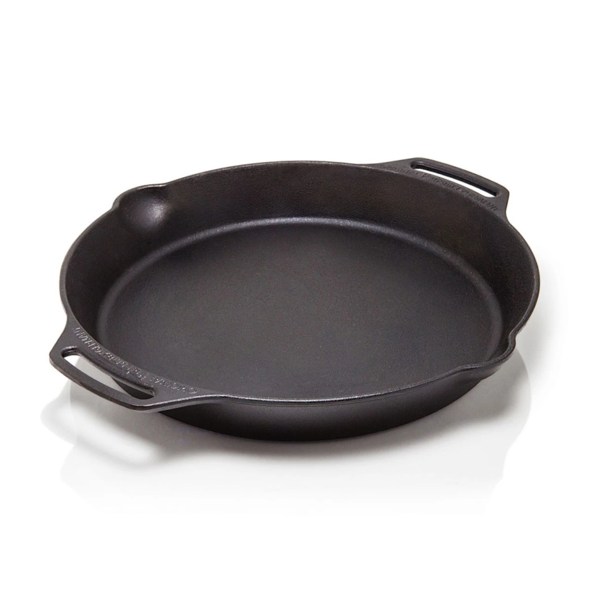 - Mit einem eignet sich die große Gusspfanne für vielerlei Gerichte und mehrere Portionen.