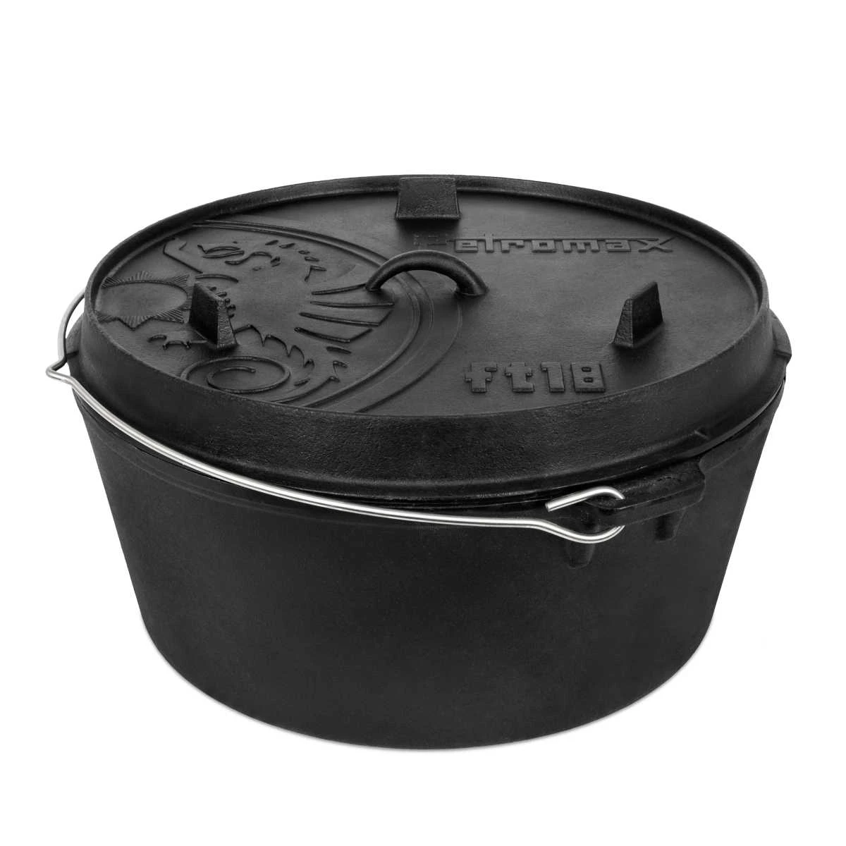 Der Petromax Feuertopf ist der ideale Begleiter für Ihre Camping-, Outdoor- und Freizeitaktivitäten. Mit ihm gart Ihr Speisen, wie z. B. Fleisch und Gemüse, sehr schonend im eigenen Saft über offenem Feuer oder im Backofen. Der Deckel des Feuertopfs kann zudem optional als Servierplatte oder Pfanne genutzt werden. Dank der vorbehandelten Oberfläche (seasoned finished) könnt Ihr den robusten Petromax Feuertopf aus Gusseisen sofort einsetzen. Gönnt Eurem Gaumen und Eurer Familie sowie Freunden gesunden Genuss mit dem Petromax Feuertopf.