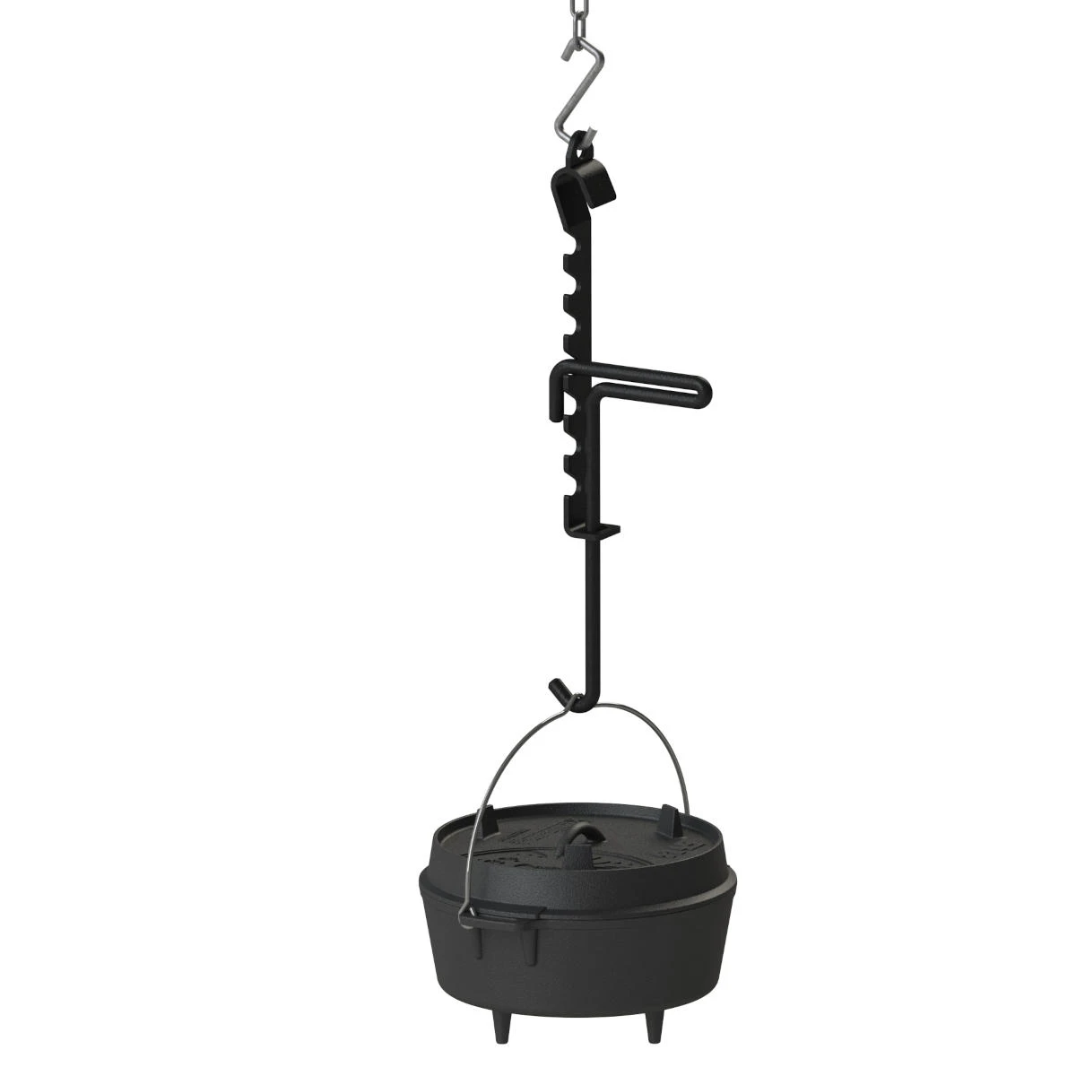 Mit dem Petromax Kesselhaken aus beschichtetem Stahl könnt Ihr schwere Töpfe und Kessel einfach über Eurem Lagerfeuer aufhängen. Dank der sieben Zähne der Kesselsäge könnt Ihr beim Draußen-Kochen den Abstand zwischen Topf oder Kessel zum Feuer individuell einstellen und so die Gartemperatur Eures Grillguts spielend leicht variieren. Den Kesselhaken könnt Ihr dank seiner praktischen Aufhängung sowohl an Eurem Dreibein, als auch an der Querstange Eurer Kochstelle über dem Feuer befestigen. Während des Grillens kann sich die Säge durch die untere Führung der Vorrichtung nicht herauslösen und sorgt so für ein sicheres Grillerlebnis.