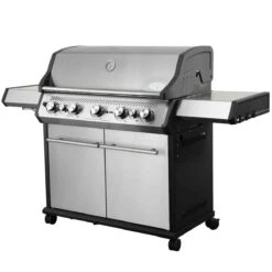 SANTOS S-418 Mit Seiten- & Heckbrenner, Edelstahl Inkl. Drehspieß, Rostheber & Silikonablage