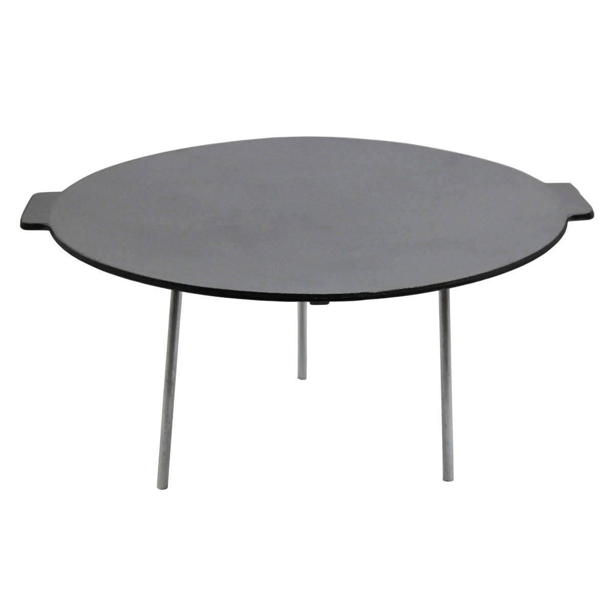 Die Grillpfanne hat einen Durchmesser von 45 cm und besteht aus Stahl. Der Clou der Grillschale ist, dass diese in der Mitte heißer wird als am Rand, sodass das gegrillte Fleisch nach dem scharfen anbraten an der äußeren Seite ruhen kann. Die Grill- und Feuerschale kann im Freien als Kochstelle über einem Gasbrenner, über dem direkten Lagerfeuer oder einem passendem Grill verwendet werden. Durch die abnehmbaren Beine bleibt der Boden bei Bedarf unversehrt. Die Standbeine sind auf der Unterseite montierbar und gewährleisten einen sicheren Stand. Ebenso kann die Schale ebenso als Feuerschale benutzt werden. Dazu einfach die Schale mit den Beinen aufstellen und wie gewohnt das Feuerholz aufschichten und anzünden, so kann man das Lagerfeuer genießen ohne dass der Boden verbrennt. Zudem kann die Grill- und Feuerschale als Abstelltisch für den Dutch Oven verwendet werden.