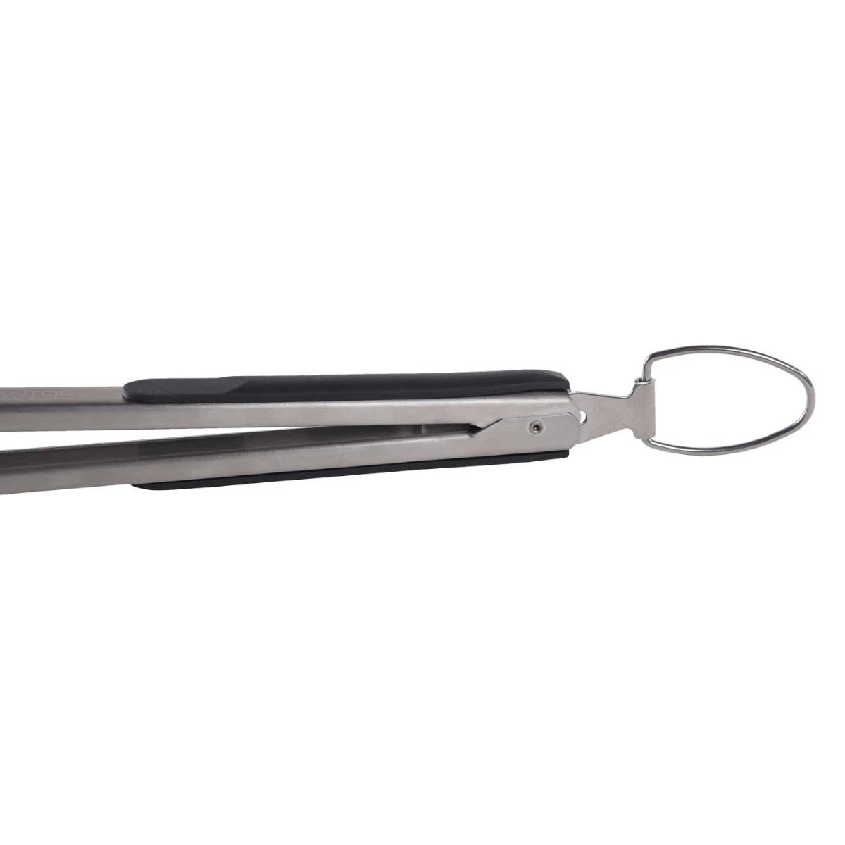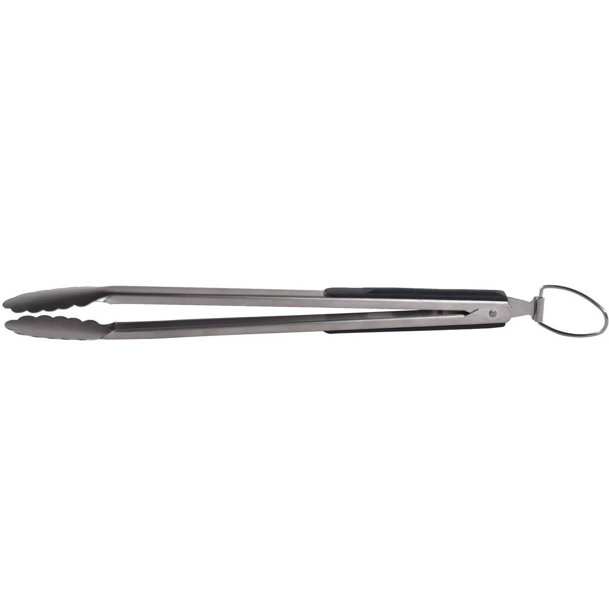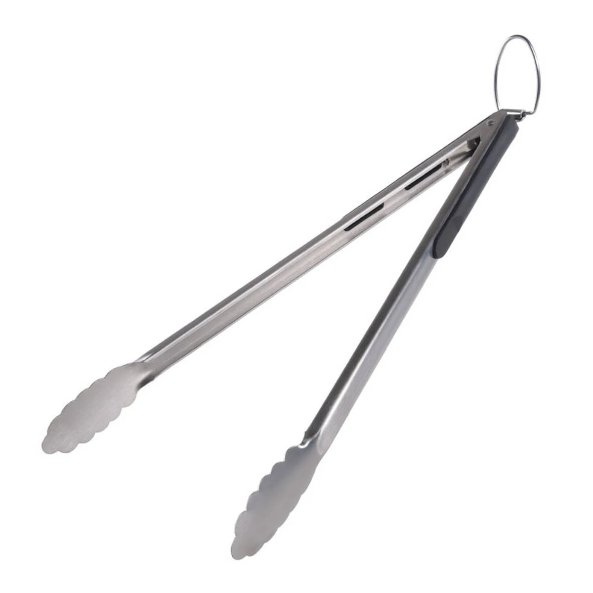Das Wenden und Servieren selbst von schwerem Grillgut gelingt mit dieser stabilen und leichtgängigen Grillzange problemlos, die gezackte Kopfform garantiert punktgenaues und sicheres Greifen. Die handliche Länge bietet trotzdem ausreichend Abstand zur Hitzequelle, das geringe Gewicht der SANTOS Edelstahl Grillzange macht sie im Handling sehr angenehm. Durch die Silikonauflagen am Griff liegt die Zange ergonomisch und rutschsicher in der Hand. Darüber hinaus verfügt die Grillzange von SAN