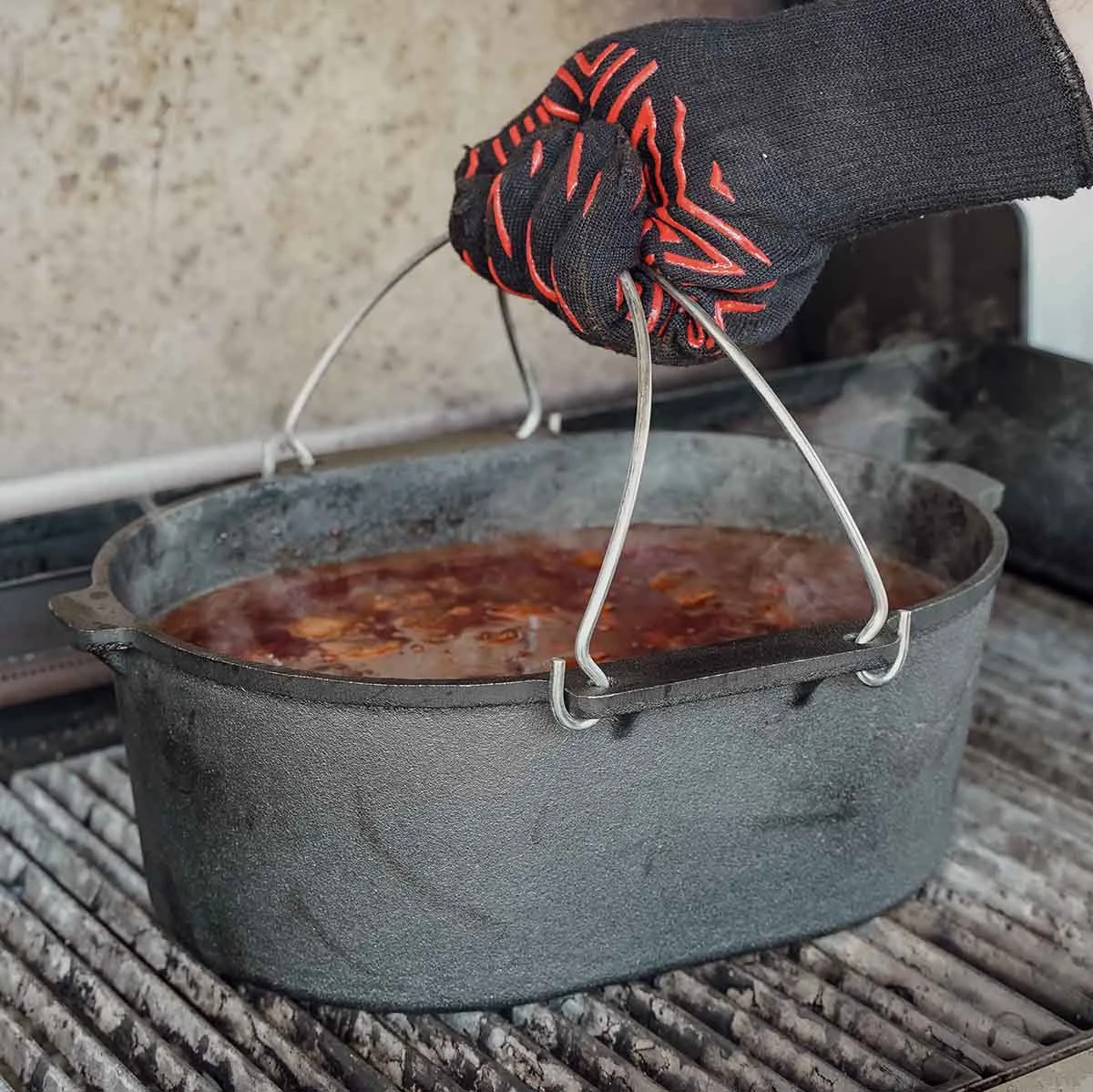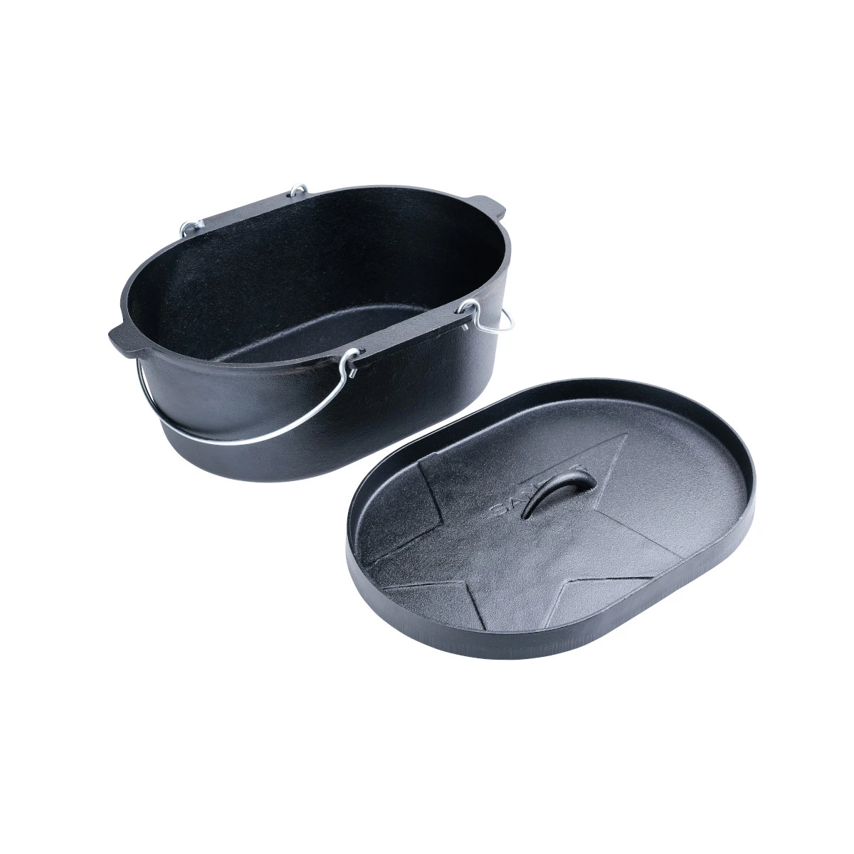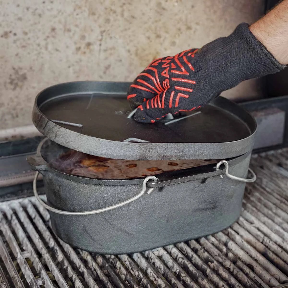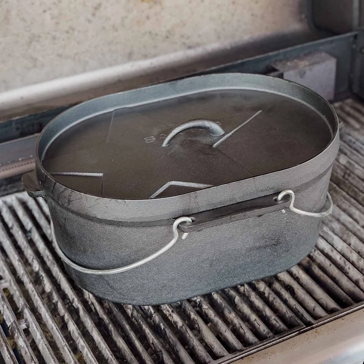 Geeignet für Gasgrill, Holzkohlegrill oder direkt in die Feuerstelle legen. Einfache Zubereitung von Schmorgerichten, Aufläufen und Grillgerichten aller Art. Ebenso als Gusseisentopf zum Brotbacken auf dem Grill geeignet.