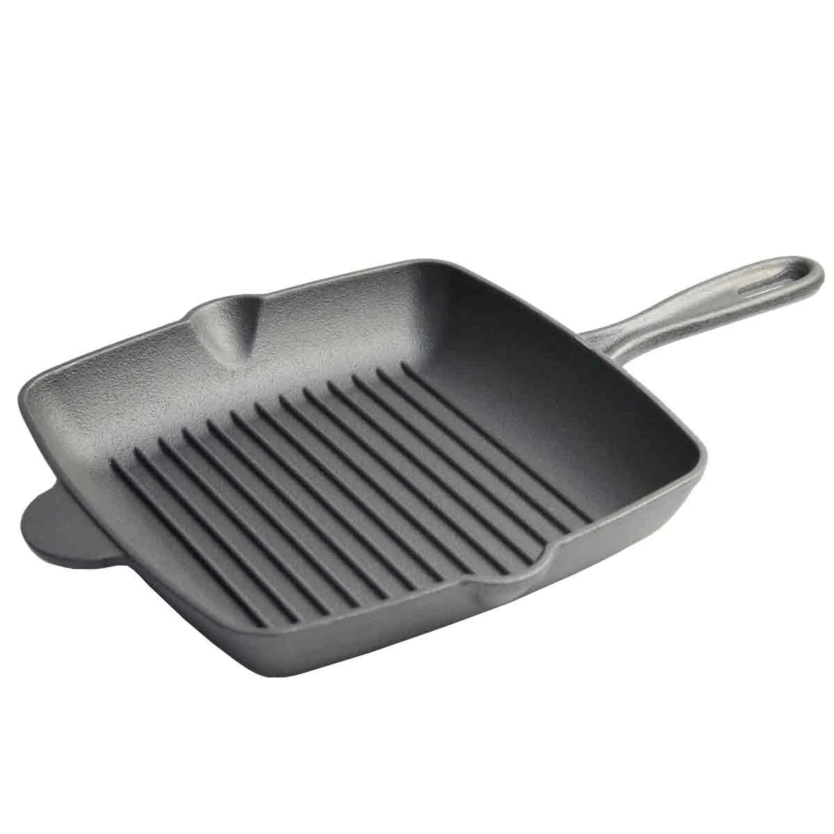 Die quadratische SANTOS-Gusspfanne eignet sich hervorragend zum Grillen oder auch zum Einsatz in der Küche. Sie ist beidseitig mit Ausgüssen versehen, so könnt Ihr die entstandenen Bratsäfte oder angerührten Saucen problemlos abgießen und weiter verwenden. Der geriffelte Boden garantiert ein Maximum an Röstaromen und das typische Branding. Aufgrund der langen Hitzespeicherung könnt Ihr die SANTOS-Pfanne auch perfekt zum Servieren nutzen.