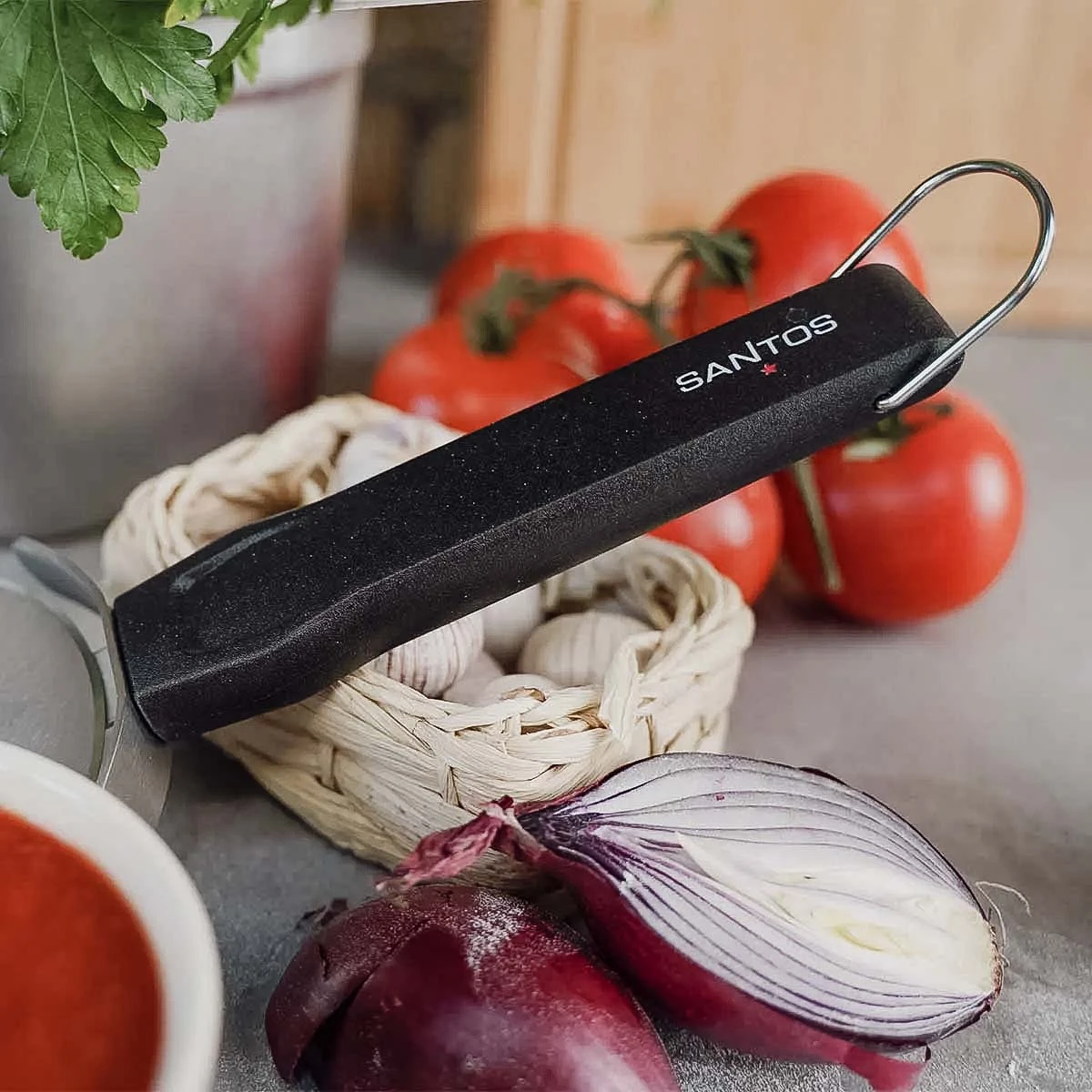 Der SANTOS Pizzaschneider aus pflegeleichtem Edelstahl ist leicht zu reinigen und spülmaschinengeeignet. Mit Aufhängeöse für praktisches Verstauen.