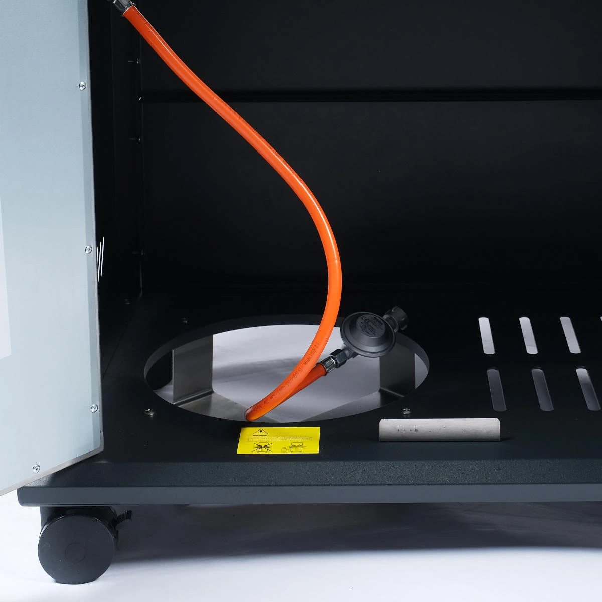 Die qualitativ hochklassigen Brenner aus Edelstahl haben eine Gesamtleistung von 10,5 kW und sind im robustem mit eingebaut. In dem Brennergehäuse wird die Hitze besonders gut von Umwelteinwirkungen wie Kälte isoliert. Das mit extra flachen Flammenverteilern sorgt für eine gleichmäßige Hitzeverteilung unter dem Grillrost und in der Garkammer. Die Flammenverteiler funktionieren ebenso als Schutz für die Brenner, damit diese durch hinunter tropfenden Saft bzw. Fett nicht verstopfen.
