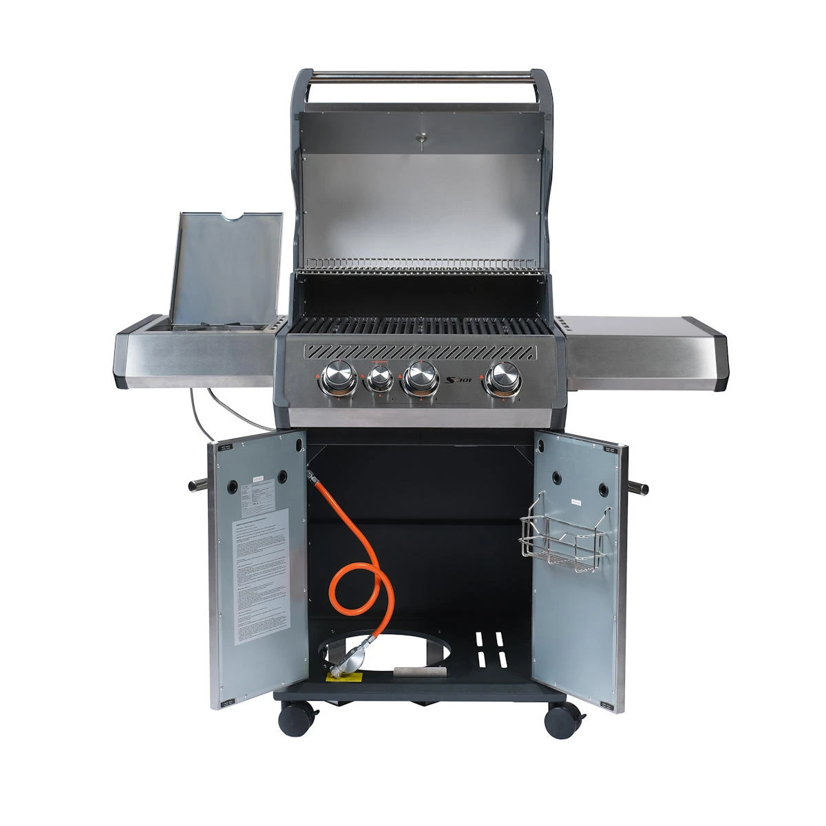 Kompetente Beratung und das richtige Gespür, was unsere Kunden wünschen, hat SANTOS zu einem der größten Grillfachhändler gemacht. Für unsere neuen Grillmodelle haben wir auf diese Erfahrungen zurückgegriffen. Der SANTOS S-301 Gasgrill in der Edelstahl Variante vereint alles, was das Herz von Grillfans höher schlagen lässt. Mit dem S-301 seid Ihr bestens für die nächsten Jahre ausgestattet. Neben der Hauptgrillfläche hat der S-301 einen Seitenkocher, der aus dem Gasgrill eine kompakte Outdoorküche macht.