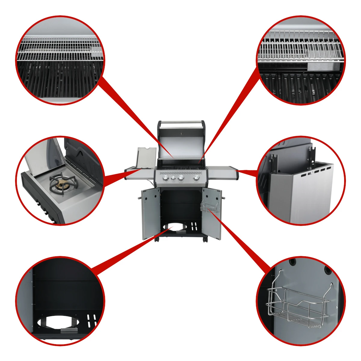 - 3 Edelstahl Hauptbrenner mit Flammenverteiler