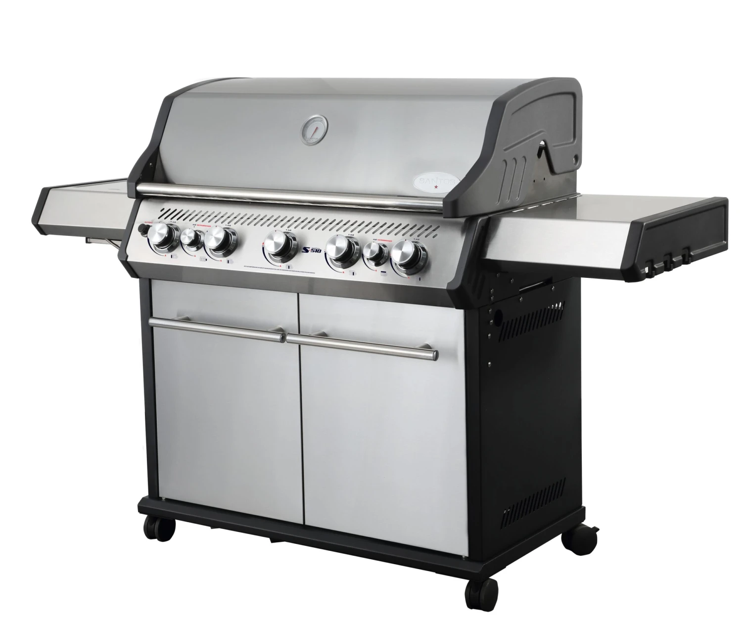 Unser 5-Brenner-Gasgrill SANTOS S-518 ist die Antwort auf zahlreiche Anfragen unserer ambitionierten Grillfans – mit einer von fast 1 Meter Breite, den angesagtesten und noch mehr ist der SANTOS S-518 eine echte Grillmaschine.