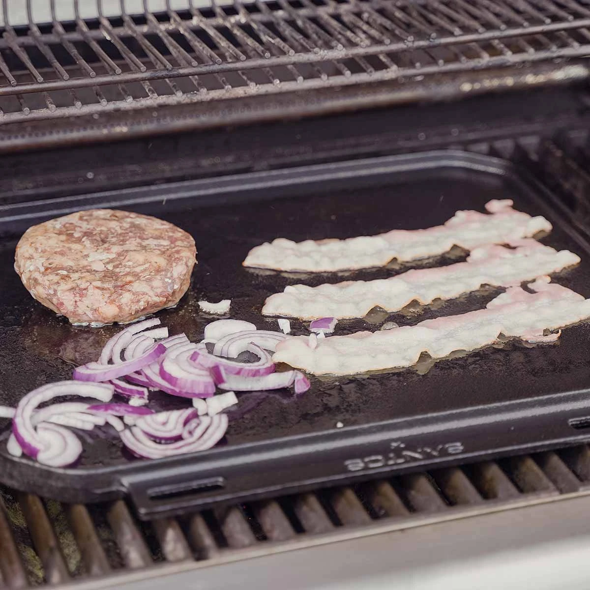 Ob Kohle- oder Gasgrill, Induktions-, Gas- oder Elektroherd, Backofen oder Lagerfeuer – die robuste Grillplatte aus Gusseisen versorgt Euch überall mit köstlichen Röstaromen und optimalen Bratergebnissen. Sogar auf dem Infrarot-Keramikbrenner könnt Ihr sie verwenden: Wichtig dabei ist, dass der Brenner-Bereich nicht abgedichtet ist, alternativ lässt sie sich auch auf einen erhöhten Rost legen.