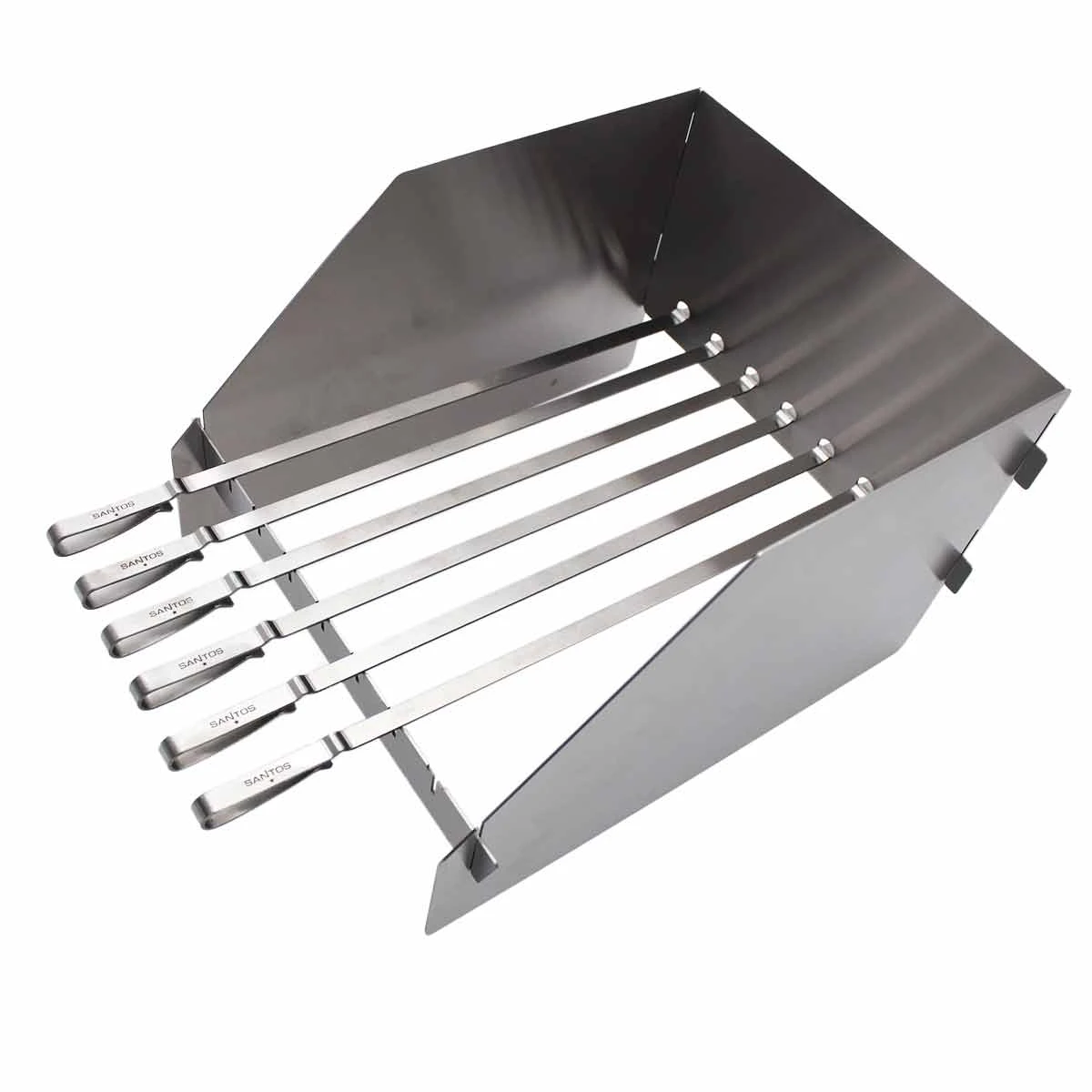 Außerdem verfügt das SANTOS Windschild über sechs Einkerbungen, in die Ihr die SANTOS Spieße einsetzen könnt. So könnt Ihr leckere Gerichte vom Spieß grillen ohne direkten Kontakt zum Grillrost zu haben.