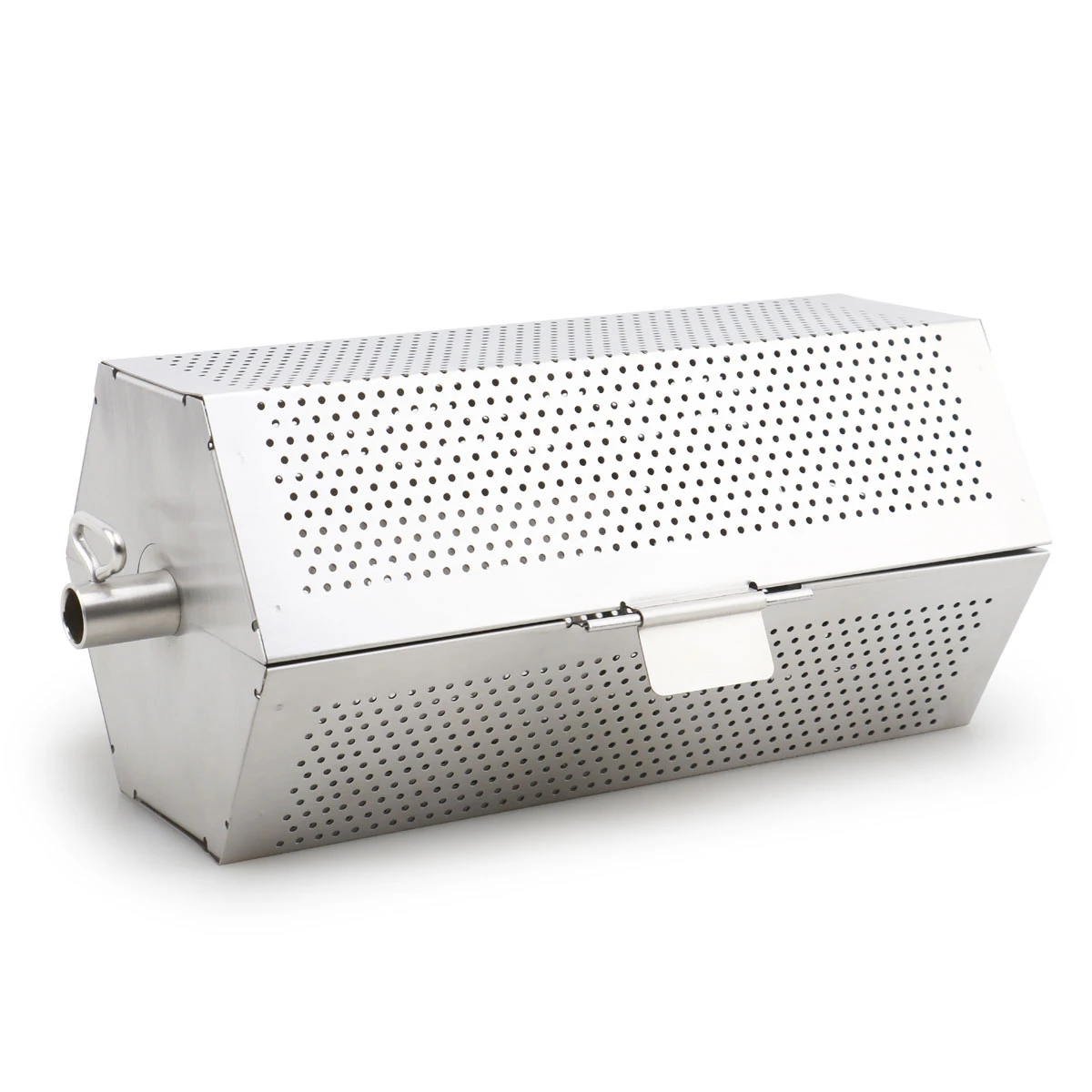 Mit dem The Bastard Drehspießkorb habt Ihr vielfältige neue Möglichkeiten an Eurem Keramikgrill. Knusprige Pommes, leckeres Popcorn, knackiges Gemüse oder würzige Kartoffelecken garen im Edelstahl-Korb , und – und dabei spart Ihr noch jede Menge Öl und Fett. Selbst Obst, Maronen oder Nüsse könnt Ihr so , ohne dass Ihr diese selbst wenden müsst. Das Befüllen des Rotisserie-Korbs ist dabei ganz einfach nach der Montage auf dem Drehspieß über die Einfüllklappe möglich.