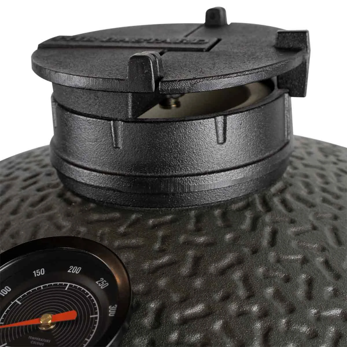 - Der neu designte am Boden des Grillkörpers ist mit seiner doppelten Schiebetür noch präziser, so dass Ihr die Temperatur im Inneren des Keramikgrills optimal kontrollieren könnt. Der Schieber passt mit seiner schönen schwarzen Oberfläche auch optisch perfekt.